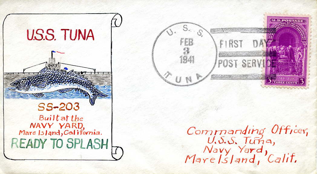 18k | First day cover for the commissioning of the Tuna (SS-203) on 3 February 1941. | Courtesy of Jack Treutle (of blessed memory). | |