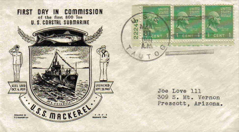 430k | Commemorative post mark on the occasion of Mackerel's (SS-204) first day in commission, 31 March 1941. | Courtesy of Jack Treutle & Tommy Trammp. | |