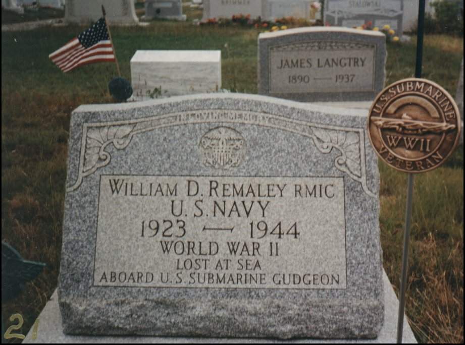 74k | The human factor: Summit Hill, Pennsylvania, Cemetary on White Street. Bill Remaley was lost on Gudgeon (SS-211), 12 May, 1944. In Memorium: In the Second Book of Shmuel (Samuel), 22nd chapter, 5th through the 20th verses, translated from the original in Hebrew and published by the Koren Publishers of Jerusalem, Israel, 1982, can perhaps aptly describe the fate of the crew and all other U.S. submariners who died defending their county: "When the waves of death compassed me / the floods of ungodly men made me afraid; / the bonds of She'ol encircled me; / the snares of death took me by surprise; / in my distress I called upon the Lord, / and cried to my G-D: / and he heard my voice out of his temple, / and my cry entered into his ears. / Then the earth shook and trembled; /the foundations of heaven moved / and shook because of his anger /...the heavy mass of waters, and thick clouds of the skies /... And the channels of the sea appeared, / the foundations of the world were laid bare, / at the rebuking of the Lord, at the blast at the breath of his nostrils. / He sent from above, he took me; / he drew me out of many waters; / he delivered me from my strong enemy, and from those who hated me; for they were too strong for me. / They surprised me in the day of my calamity: / but the Lord was my stay / He brought me forth also into a large place: / he delivered me because he delighted in me./" |