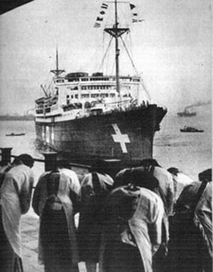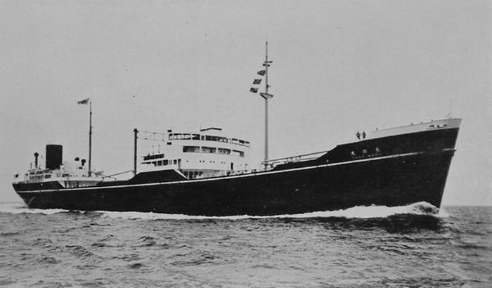 130k | 29 March 1943: Makassar Strait, Celebes. At about 0400, LtCdr (later Rear Admiral) William S. Post’s (USNA ’30) Gudgeon (SS-211) attacks a convoy. In a night surface attack, Post fires six torpedoes and claims four hits on Toho Maru. She sinks between Tarakan and Samarinda, Borneo at 00-30N, 118-26E. Casualties are unknown. Captain Nakazato survives the sinking and is later posted CO of Mogamigawa Maru. | Photo courtesy of upload.wikimedia.org via Tommy Trampp. | |