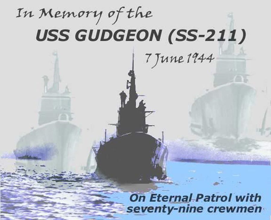 242k | Commemorative photo in honor of the memory of the crew of the Gudgeon (SS-211). | Photo courtesy of Tom Kermen. Dante's Prayer courtesy of Loreena McKennitt via loreenamckennitt.com | |