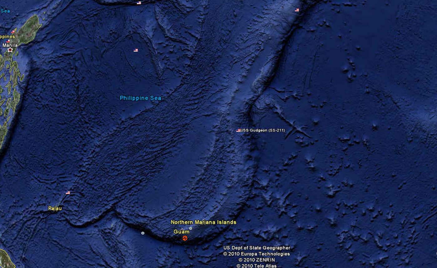 147k | Google Earth satellite photo of the general area in which Gudgeon (SS-211) is assumed to have been lost. | View courtesy of Google Earth. | |