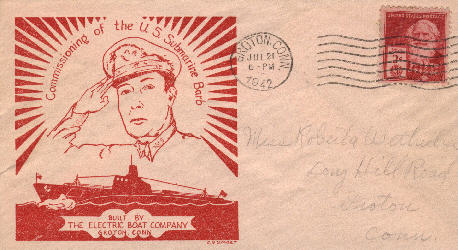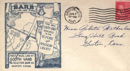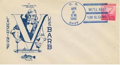 17k | Commemorative post marking the Barb's (SS-220) launching, 2 April 1942. | Courtesy of Jack Treutle (of blessed memory). | ||