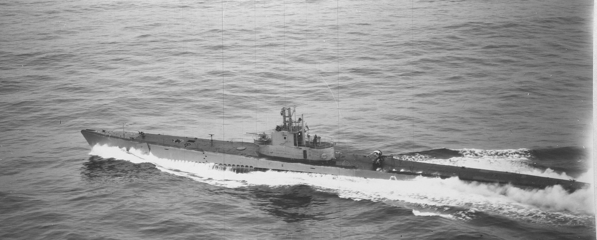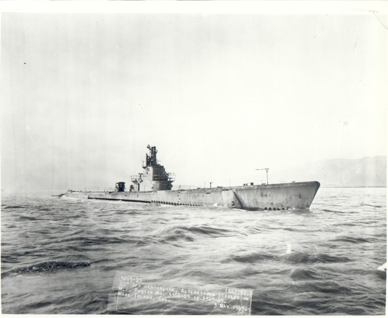 143k | Barb (SS-220) taken in May 1945 off of San Francisco just before she departed for Pearl Harbor and from there on her legendary last war patrol. Photo taken from a ZP-32 airship. | USN photo courtesy of David Buell. | ||