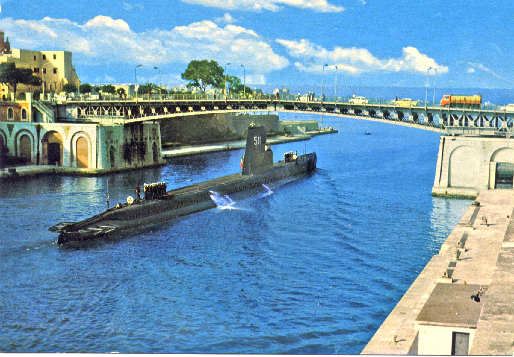 207k | Enrico Tazzoli (S-511) underway in the "Grand Harbor" of Malta. The large warships at right is the guided missile light cruiser Guiseppe Garibaldi (C-551). The Guiseppe Garibaldi was rebuilt in the La Spezia Arsenal starting from 1957, and, at her completion in 1961, she was named flagship of the Italian Navy. | Text i.d. courtesy of Maurizio Brescia. Partial text courtesy of wikipedia.org. Photo courtesy of Robert Hurst. |