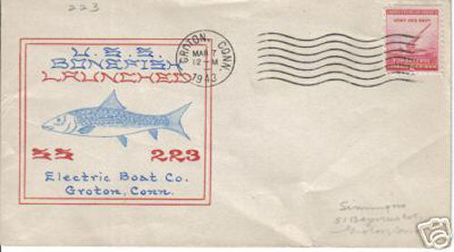 27k | Commemorative post mark from Bonefish's (SS-223) launching at the Electric Boat Co., Groton, CT., 7 March 1943. | Courtesy of Jack Treutle (of blessed memory). | |