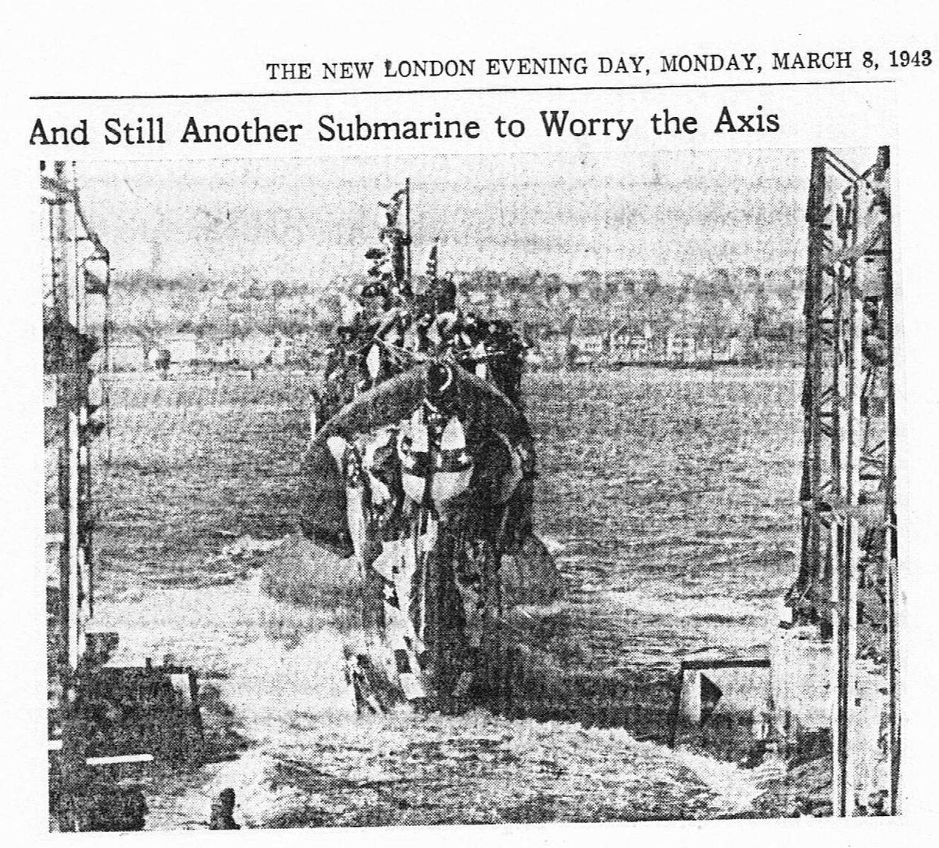 351k | And Still Another Submarine to Worry The Axis | New London Day, 8 March 1943 photo courtesy of Wendy S. Gulley, Archivist, Submarine Force Museum, Naval Submarine Base NLON, Groton, CT. | |