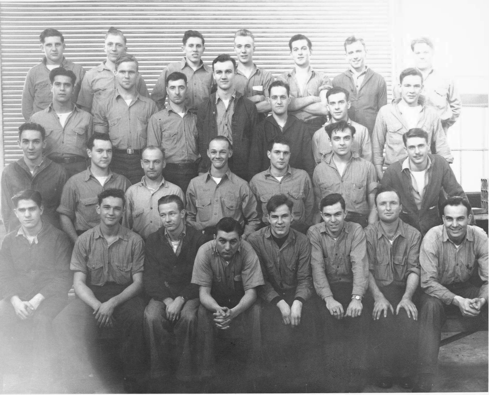 277k | Bonefish (SS-223) crew photo includes Electrician's Mate, Third Class John Frederick Parton, 1st row, 2nd on left, McMM1c H. Vernon Miles, second row from the bottom, fourth in from the left - he is the one with Miles stenciled on his shirt. | Photo i.d. courtesy of Ric Hedman. USN photo courtesy of Mr. William "Randy" Everett (nephew) of McMM1c H. Vernon Miles, plankowner of the Bonefish (SS-223), K.I.A.. with the rest of the 84 man crew of the Bonefish. | |