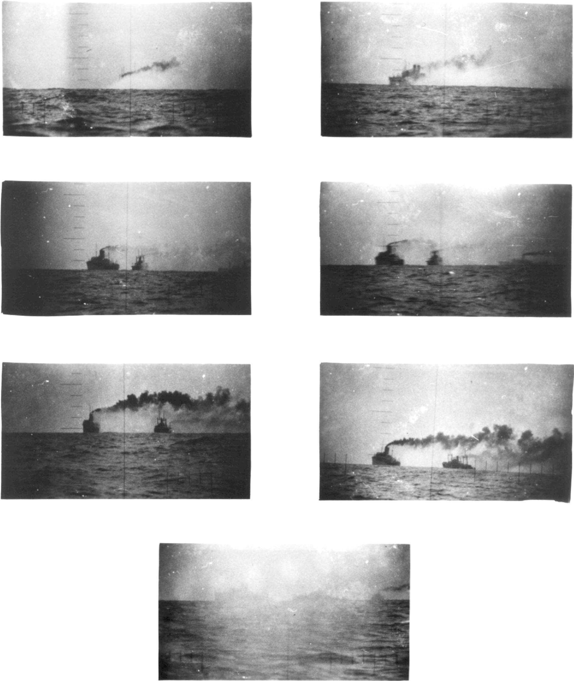 984k | Pictured here are targets seen through Bonefish's (SS-223) periscope. In searching for more targets, Bonefish eventually found herself in the ASW report of CD-22 which participated in her sinking. | Photo courtesy of Scott Koen & ussnewyork.com. PDF photos courtesy of Kiyotaka Asano. |