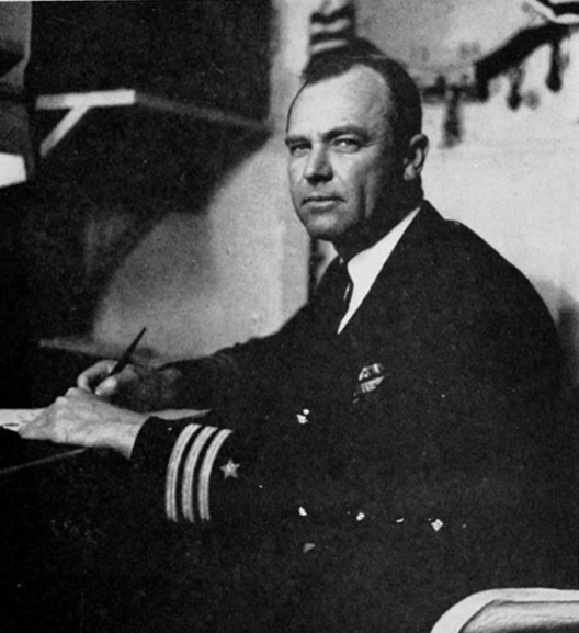 102k | Commander Thomas Wesley Hogan was the commanding officer of the Bonefish (SS-223) from 31 May 1943 to June 1944. He is the holder of the Navy Cross with two gold bars in lieu of the second and third awards, the Silver Star with one star in lieu of the second award, two Commendation Ribbons with bronze "V", and the Presidential Unit Citation with one star in lieu of second award. Commander Hogan is a member of the Naval Academy Class of 1931. | Photo from the Atlanta CL-104 Naval Cruise Book from 1948, courtesy of Bill Gonyo. | |