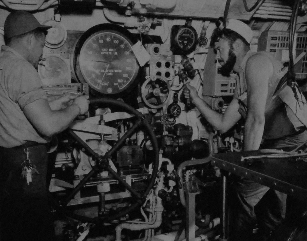 ![]() | 155k | Crewmen in engine room spaces. | Photograph # 80-G-325181, by Photographer's Mate First Class L. Strawger, now in the collections of the National Archives, courtesy of National Museum of the U.S. Navy via flickr.com. | |