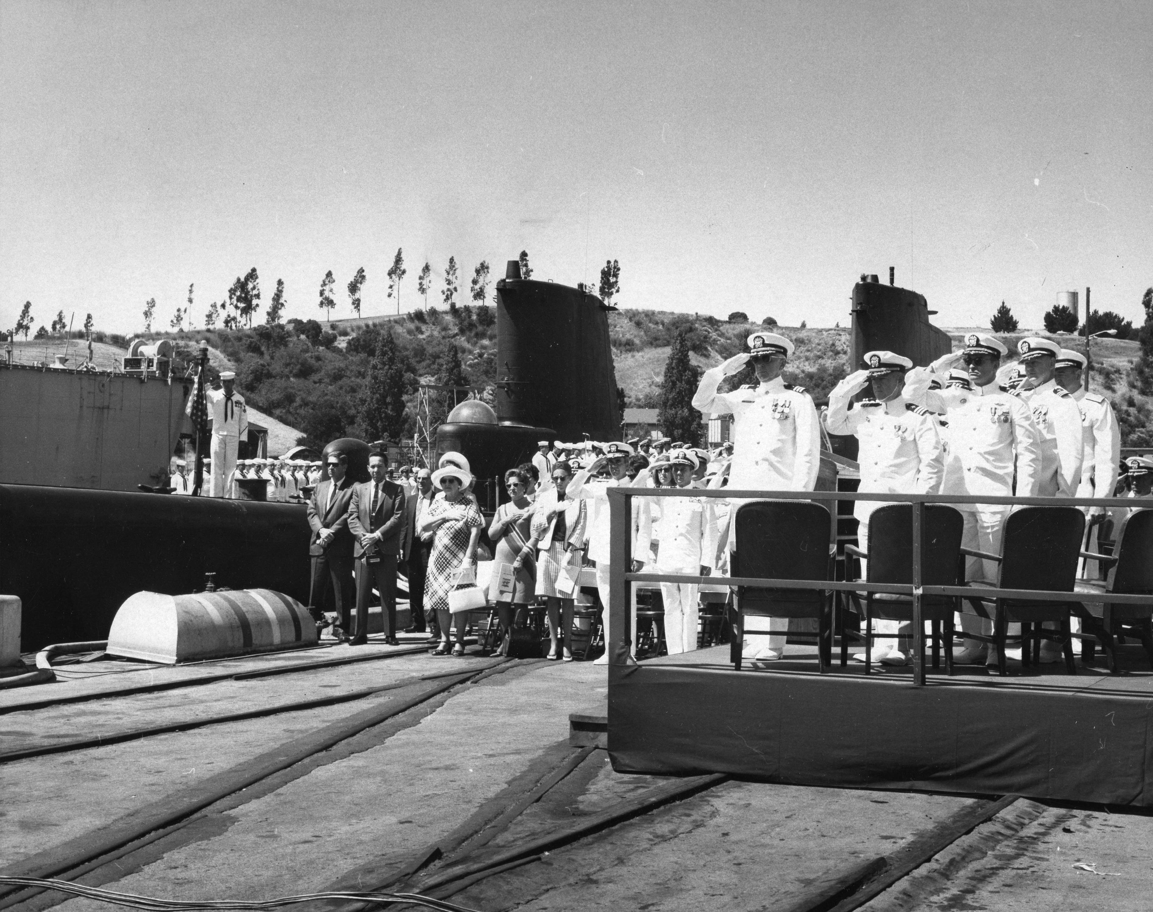 ![]() | 1.20k | Commanding officers of the five decommissioned submarines on the speakers stand at Mare Island on 28 June 1969. | Photo courtesy of the Vallejo Naval and Historical Museum via Darryl L. Baker. | |