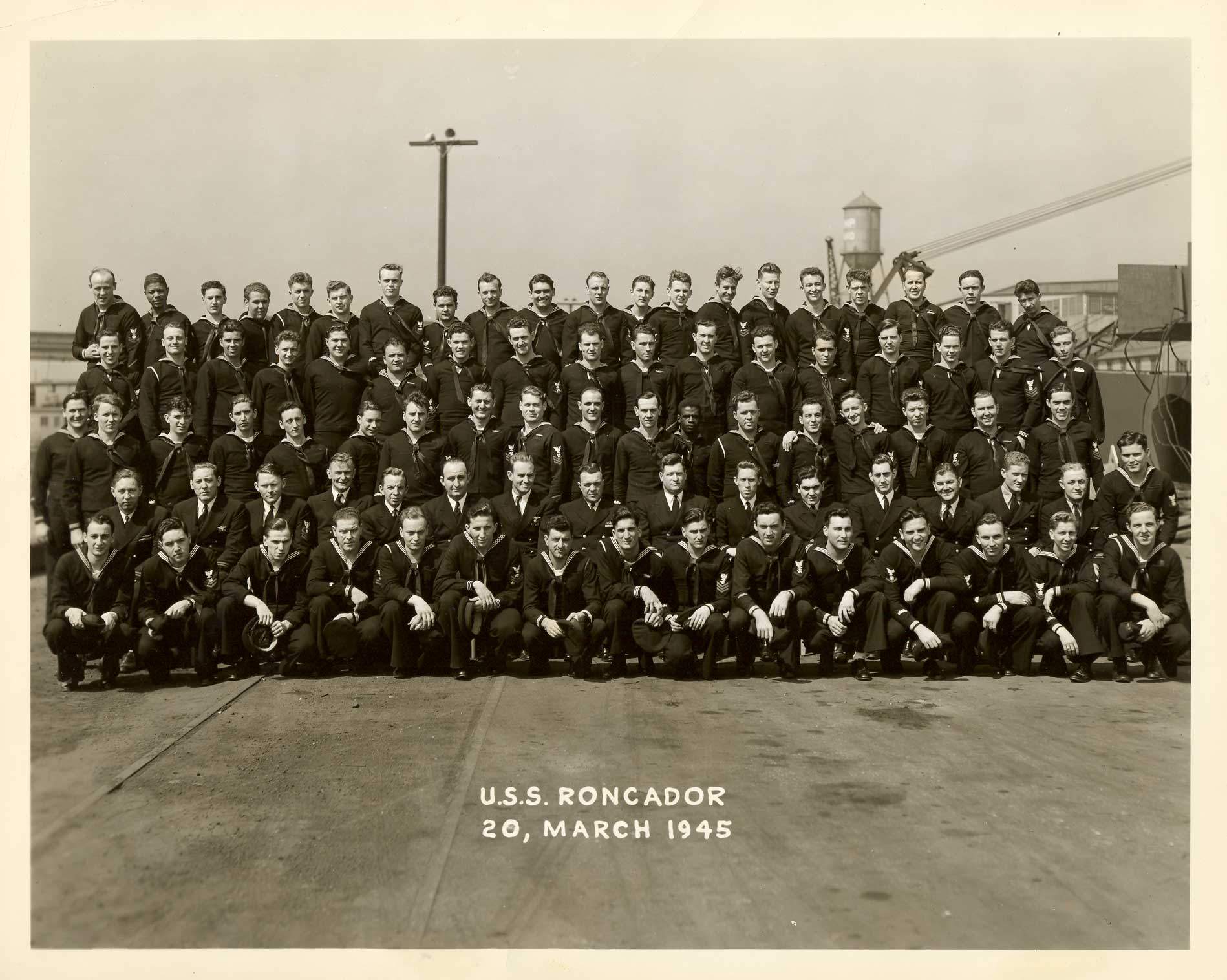 1.25k | Roncador (SS-301) Commissioning on 27 March 1945. | USN photo courtesy of rearadmiralcrawford.org. via his son, Joseph Crawford. | |