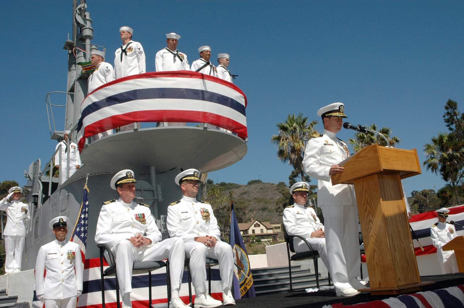 151k | U.S. Navy Cmdr. Scott Swehla, the commanding officer of the Los Angeles class attack submarine Asheville (SSN-758), speaks during the ship's change of command ceremony at the Roncador (SS-301) on Naval Base Point Loma, Calif., 12 July 2007. Cmdr. Brodie Berkhout relieved Swehla as commanding officer during the ceremony. | Official USN photo # N-0946B-004 by MC1 Kristina Brockman, from the Department of Defense Still Media Collection, courtesy of dodmedia.osd.mil. & submitted by Bill Gonyo. | |