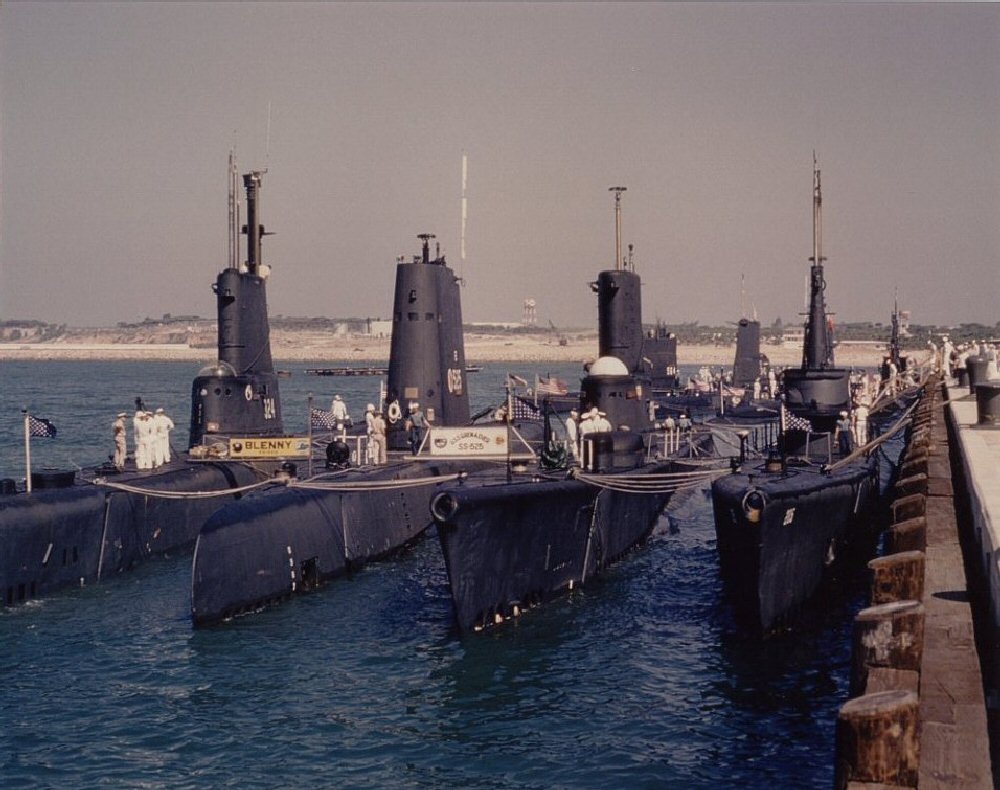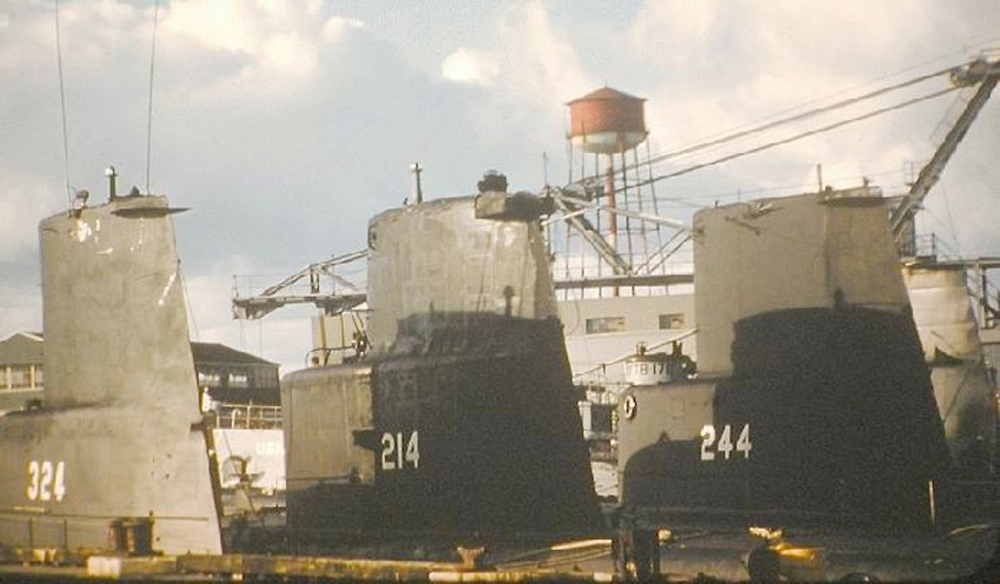![]() | 299k | Nothing like going on a vacation to Bermuda. The Blenny (SS-324), Grouper (SS-214) & Cavalla (SS-244) appear here sometime after 1953. | Photo courtesy of John Hummell. | |