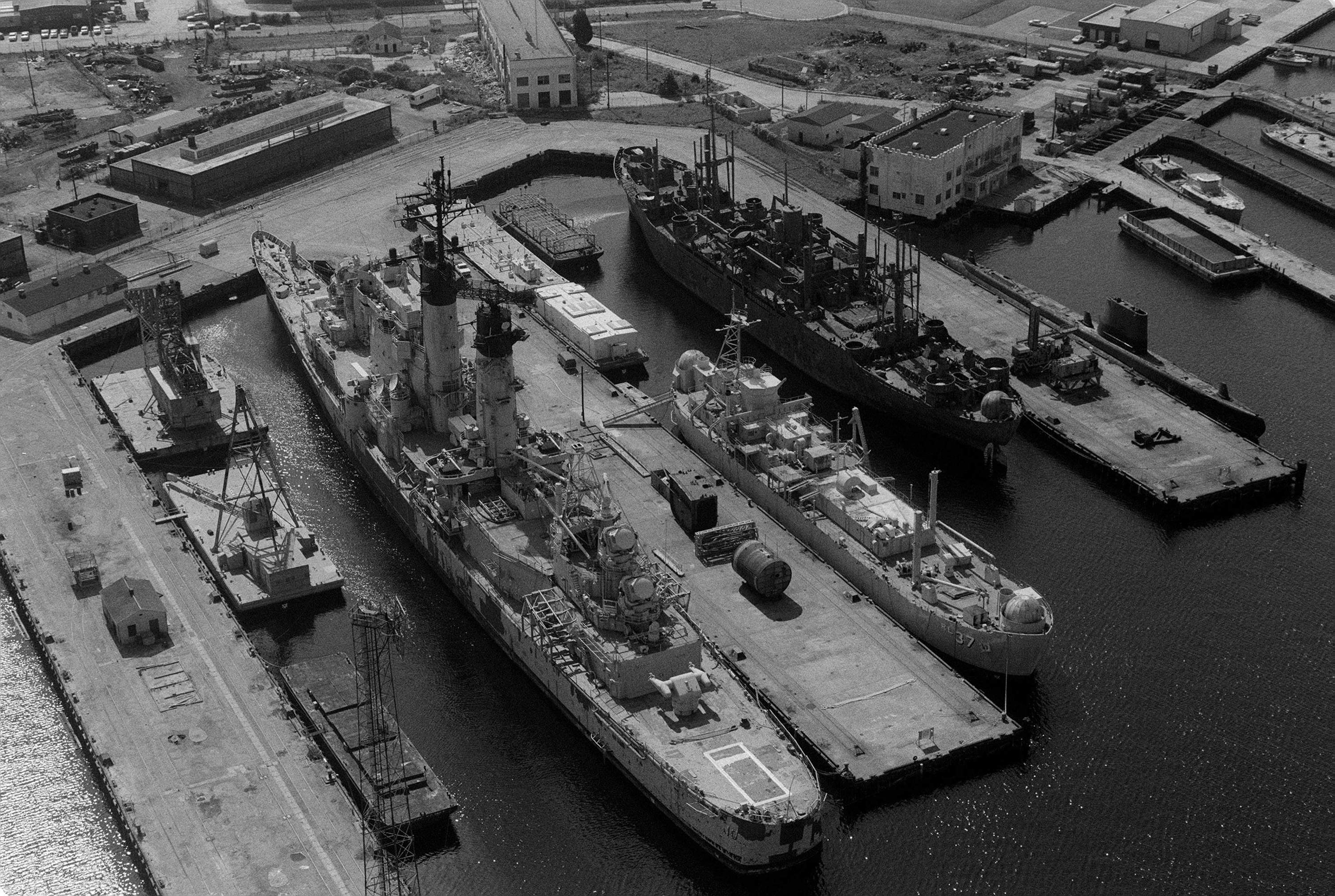 143k | Mixed bag of boats from different bases moored together possibly at the Key West Naval Base or at Roosevelt Roads, P.R.