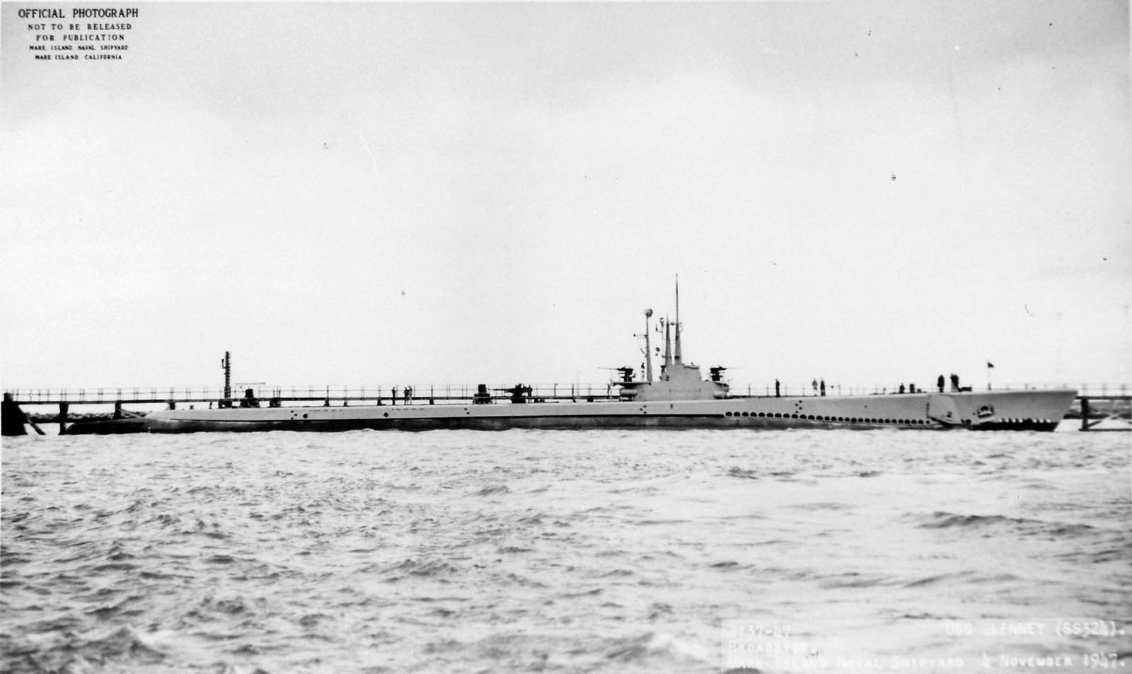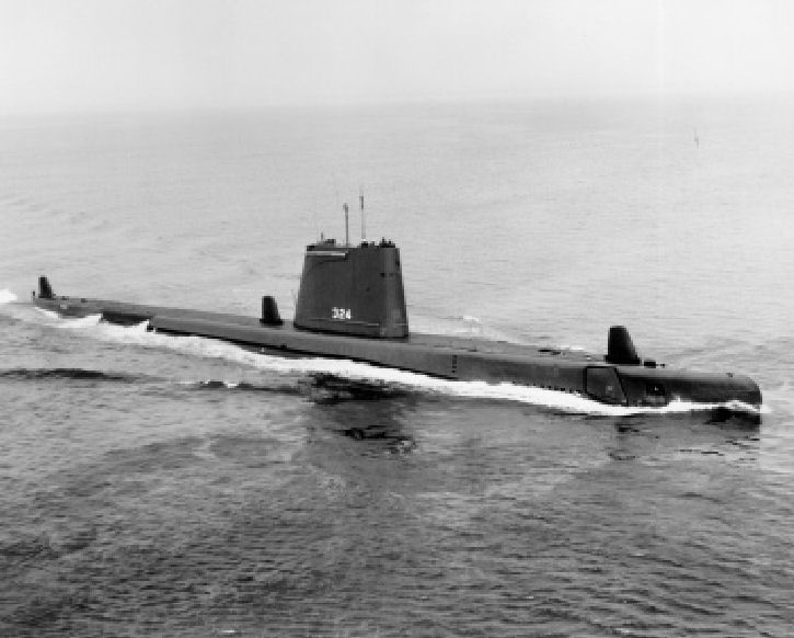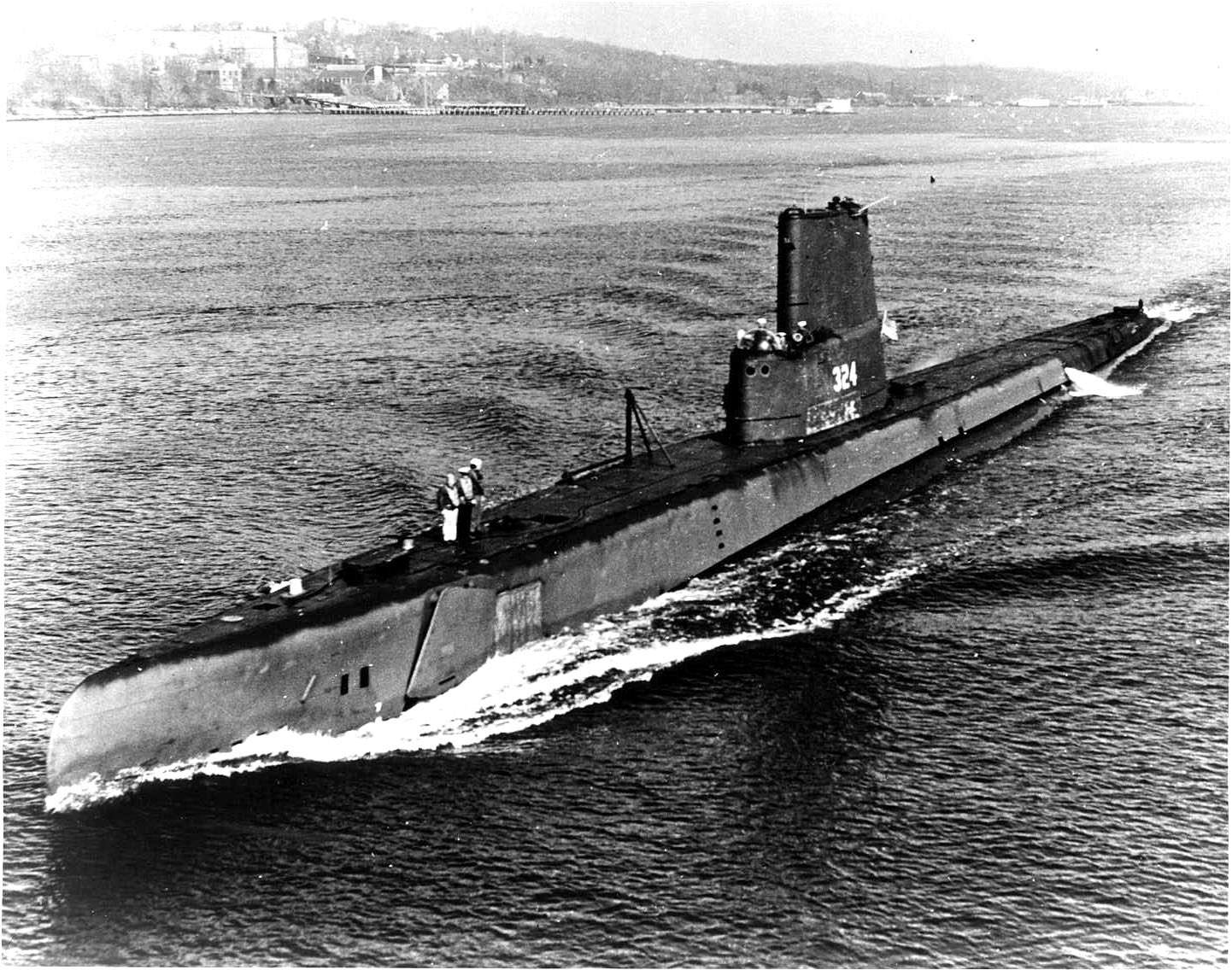 ![]() | 283k | The Blenny (SS-324) makes her way up the Thames river after 1951 conversion to a GUPPY class. | USN photo courtesy of ussubvetsofwwii.org. | |