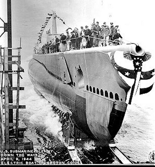 ![]() | 72k | The Blenny (SS-324) sliding down the launching ways at Electric Boat Company, Groton, CT., 9 April 1944. | Courtesy of Frank Toon. Coquille, Oregon, webmaster / webenet.net. | |