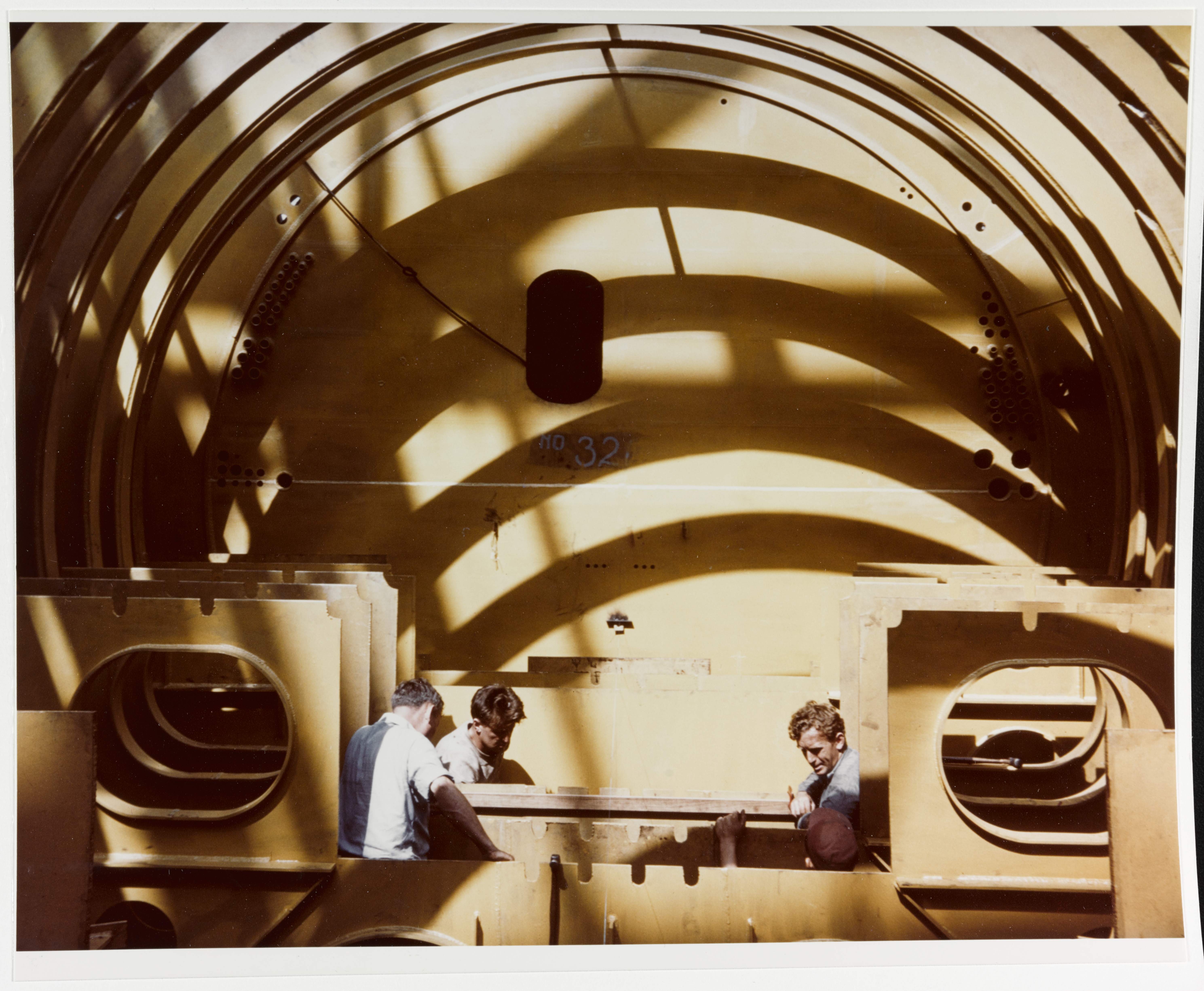 ![]() 0832427 | 1.45k | Men installing hull sections inside the pressure hull of Blenny (SS-324), circa summer 1943. | Photographed by Commander Edward Steichen, USNR. USN photo # 80-G-K-15069 courtesy of Naval History and Heritage Command |