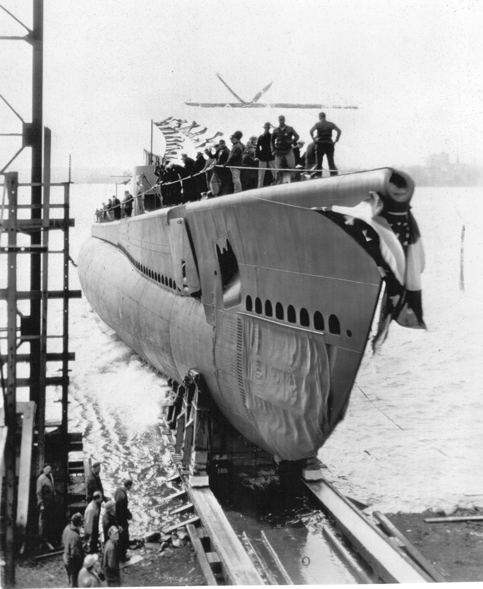 865k | Launching of the Cochino (SS-345), 20 April 1945. | Photo courtesy of Ron Reeves (of blessed memory). | |