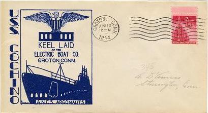 18k | Commemorative postal cover on the occasion of Cochino's (SS-345) keel laying, 13 April 1944, at the Electric Boat Co., Groton, CT. | Courtesy of Jack Treutle (of blessed memory). | |