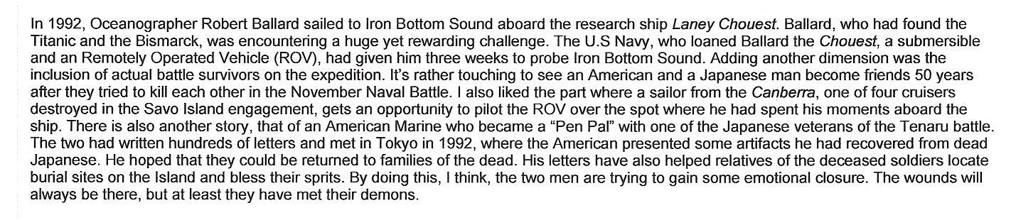 ![]() | 107k | MV Laney Chouest transporting Sea Cliff (DSV-4) enroute to Savo Island where she would dive over sunken battleship Kirishima in Ironbottom Sound, at a depth of 3,000 feet in 1991. | Photo courtesy of nationalgeographic.com via Tommy Trampp. | |