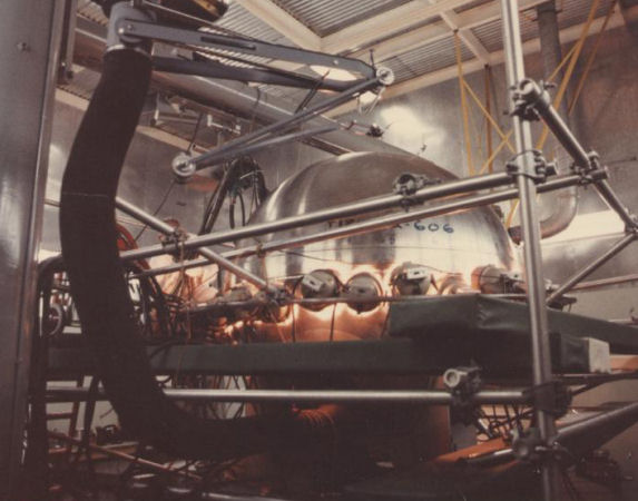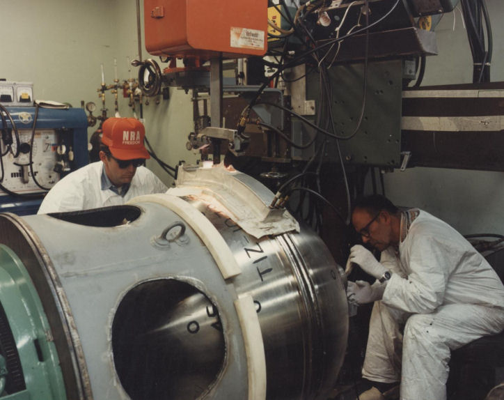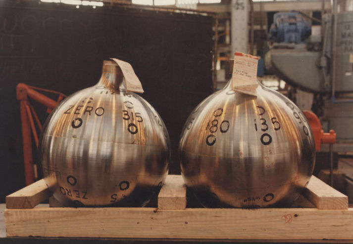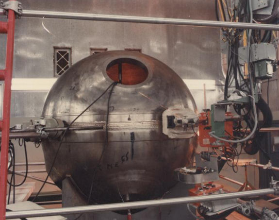 48k | The personnel sphere of the Sea Cliff (DSV-4) being preheated prior to welding. Thick section titanium required a preheat of 200°F prior to welding. | Photo & text courtesy of Jim Richardson. | |