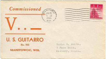![]() | 14k | Commemorative post mark on the occasion of Guitarro's (SS-363) commissioning, 26 January 1944. | Courtesy of Jack Treutle (of blessed memory). | |