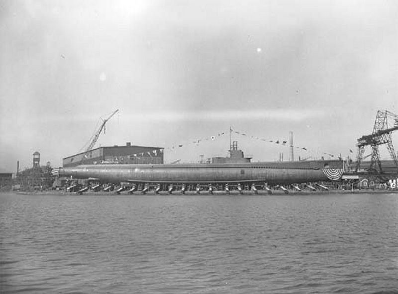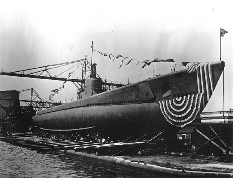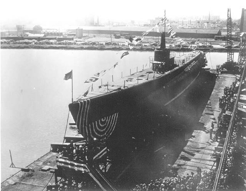 ![]() | 84k | Guitarro (SS-363) enters the water at Manitowoc Shipbuilding Co, Manitowoc, WI., 26 September 1943. | Photo by Harry Berns, Official photographer of the Manitowoc Shipbuilding Co., Manitowoc, WI. Submitted by Larry Bohn, courtesy of the Wisconsin Maritime Museum, home of the Cobia (SS-245) | |