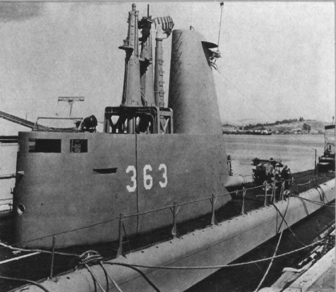 ![]() | 78k | Under new ownership: The ex-Guitarro (SS-363) as the Turkish Preveze (S-22) 1954. | USN photo courtesy of ussubvetsofwwii.org. | |