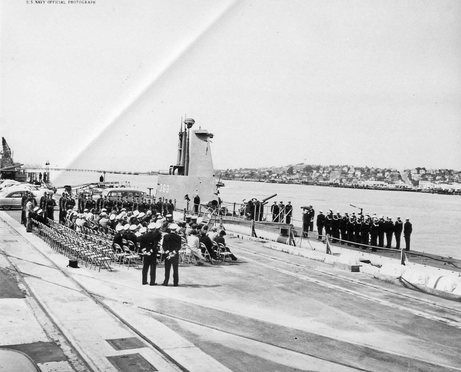![]() | 165k | General view of the re-commissioning ceremonies aboard Guitarro (SS-363) at Mare Island on 15 May 1954. | USN photo # 21105-5-54, courtesy of Darryl L. Baker. | |