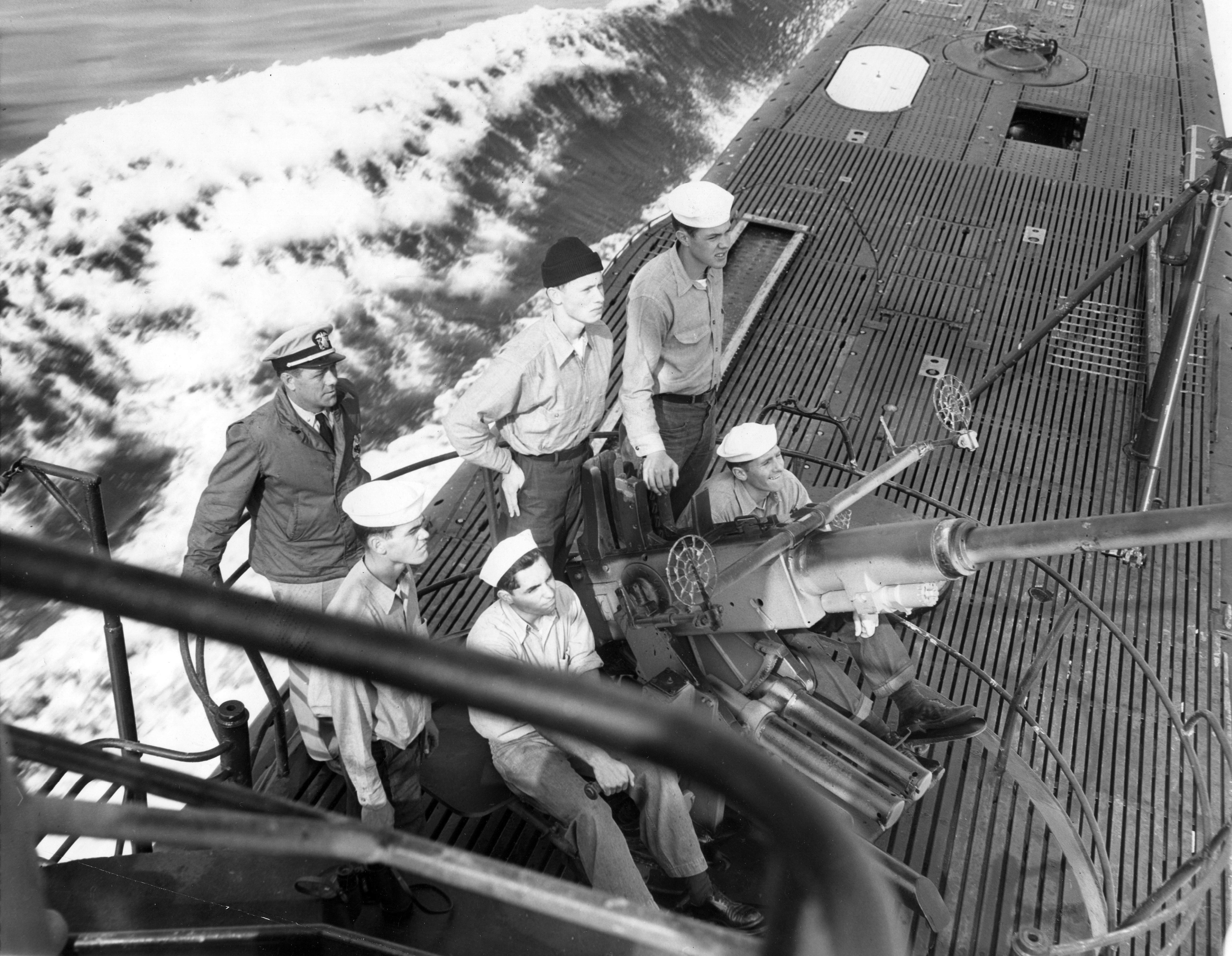 ![]() | 1.80k | Members of the Naval Reserve Submarine Division 12-11 are manning the 40mm gun aboard the Guitarro (SS-363) in September 1953. Left to right are Charles Kersthold, Peter Erickson, Frederick Davis, John Estes and Charles Warnock while LT J. B Kettele looks on. | USN photo # 092352 TH 01, courtesy of Darryl L. Baker. via Vallejo Naval and Historical Museum. | |