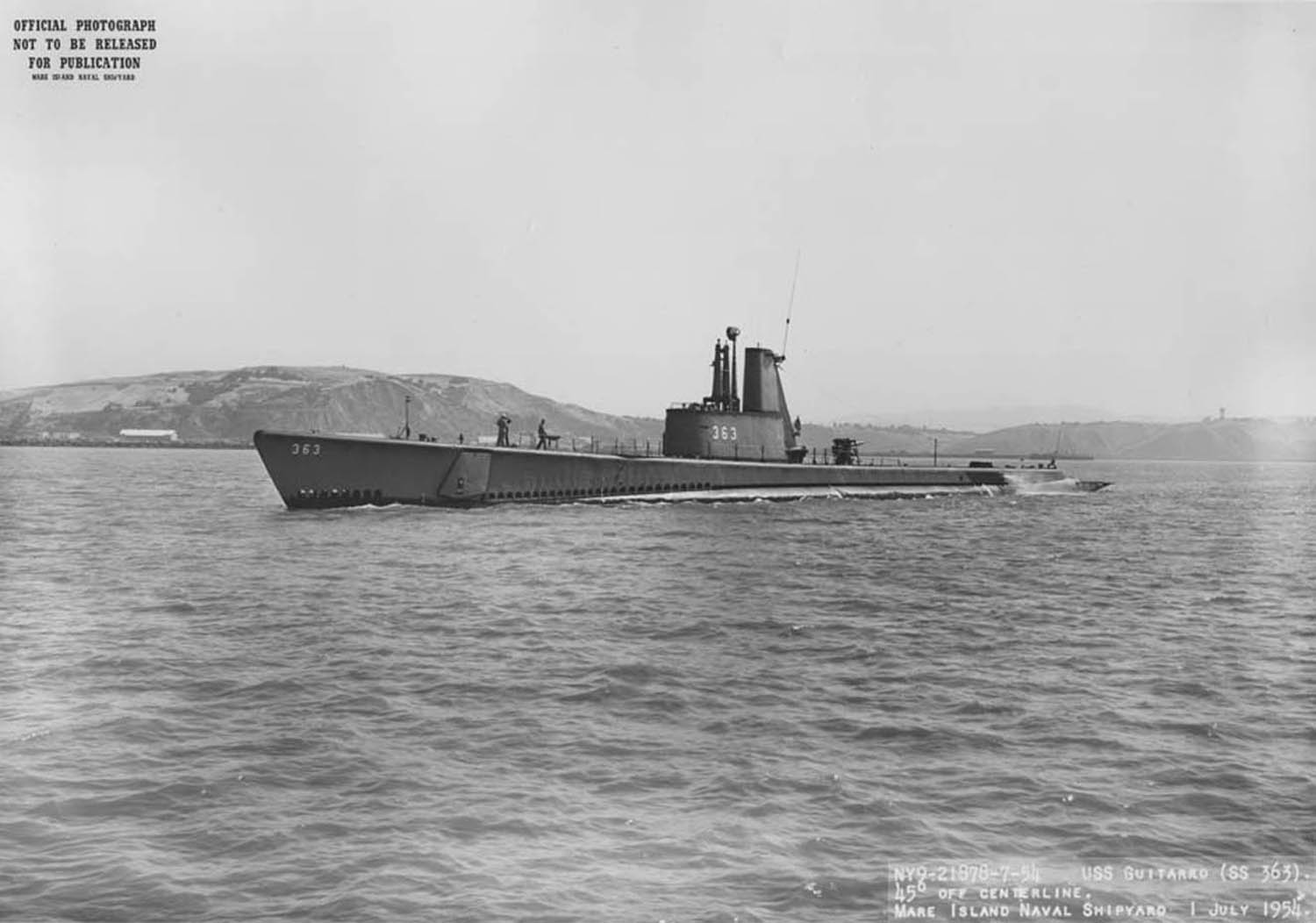 112k | Guitarro (SS-363) at Mare Island on 1 July 1954. | Mare Island Navy Yard Ship Files, NARA San Francisco, Photo # NY9-21880-7-54, courtesy of Tracy White @ Researcher @ Large. | |