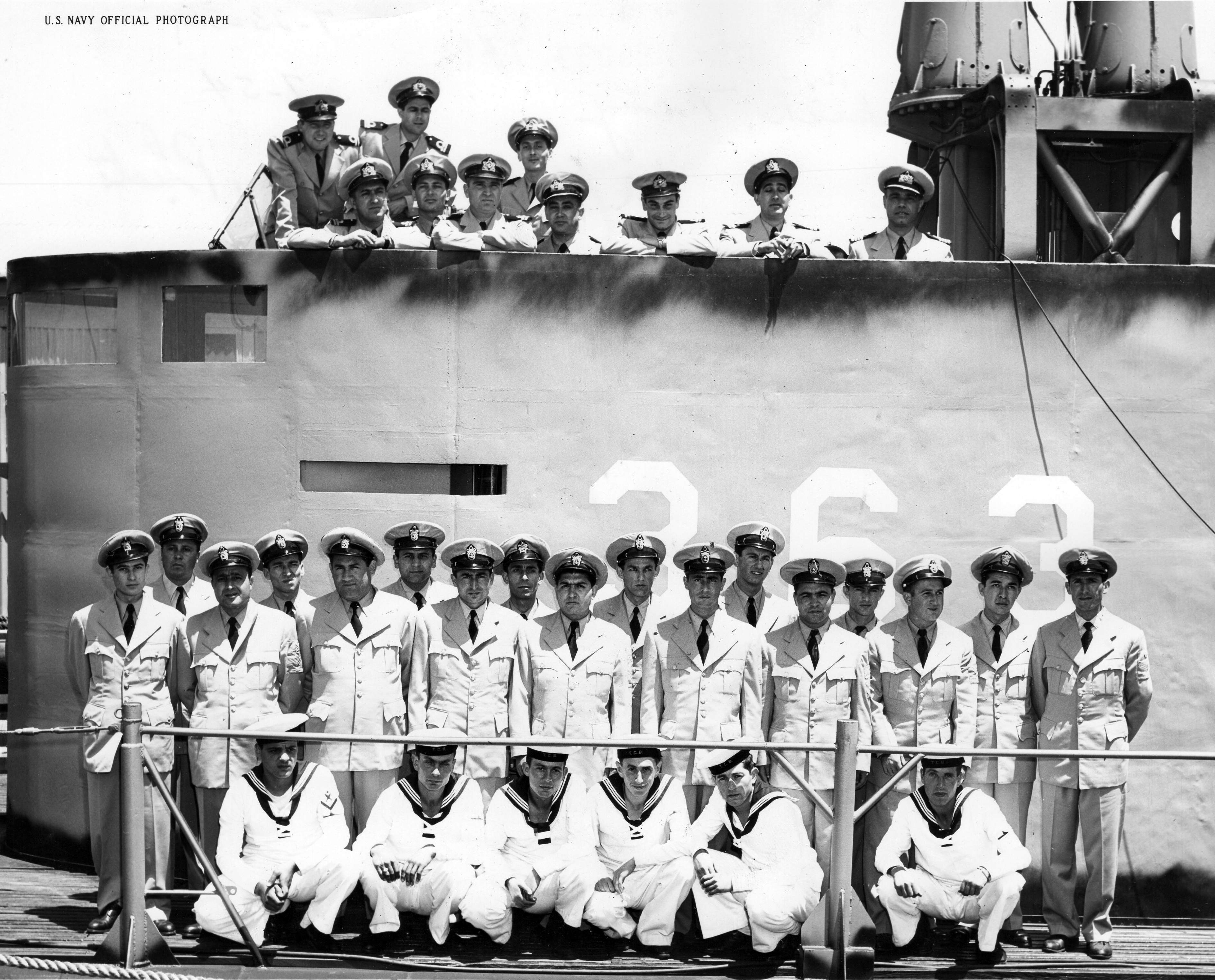 ![]() | 981k | The Turkish crew of the Guitarro (SS-363) prior to the sub's transfer at Mare Island on 7 August 1954. | Photo # 22009-7-54 TH courtesy of the Vallejo Naval & Historical Museum via Darryl L. Baker. | |