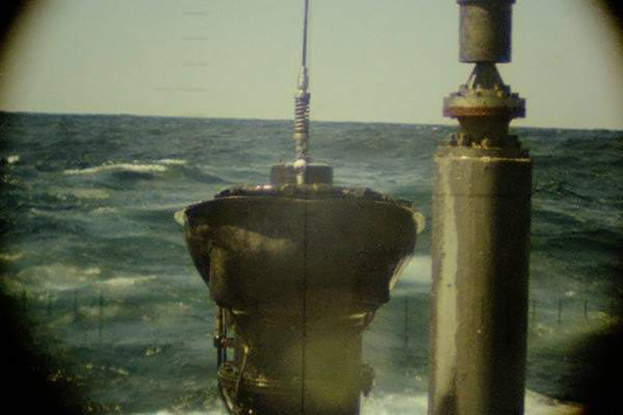 234k | Spring is in the air! Snorkel mast with whip antenna (on spring) and UHF mast foreground Hardhead (SS-365) view through periscope, circa 1971. |