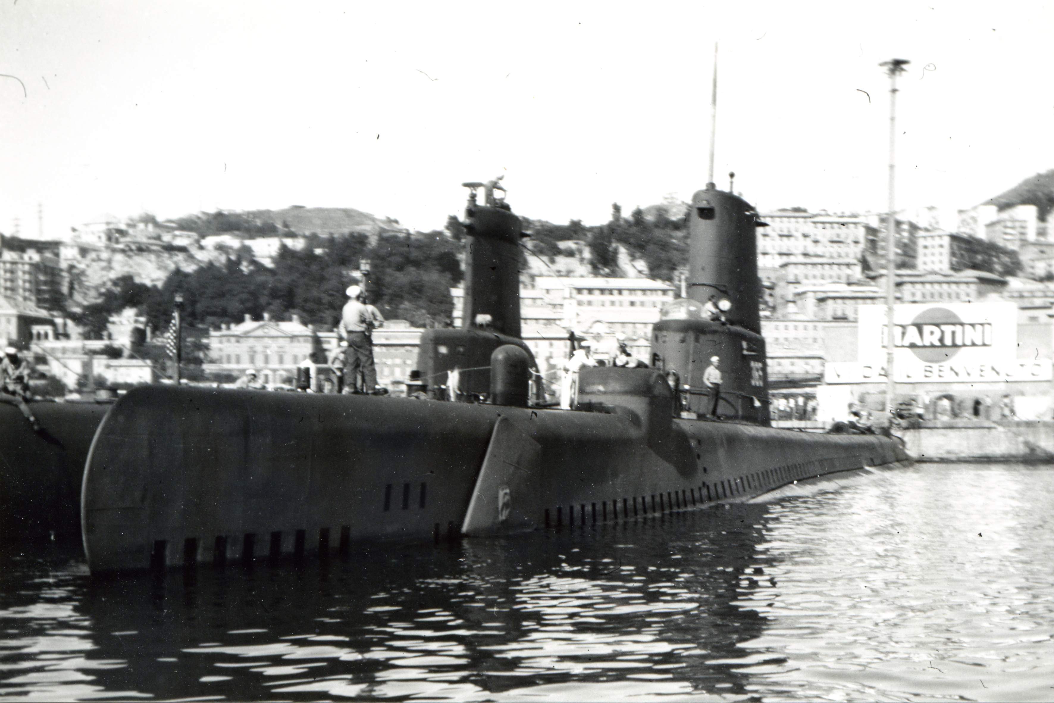 ![]() | 385k | Stern view: Outboard Hardhead (SS-365) & inboard Cutlass (SS-478) dockside in Genoa, Italy, 1 October 1956. | Courtesy of Carlo Martinelli. | |
