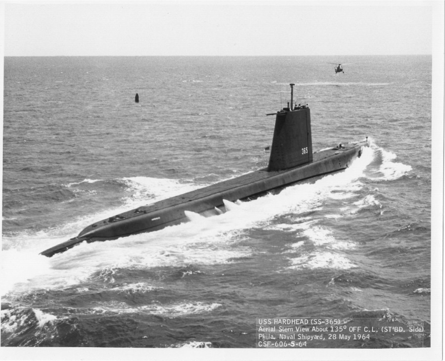 ![]() | 1.16k | Starboard view of the Hardhead (SS-365), 30 December 1966. | Photo courtesy of Scott Koen & ussnewyork.com. | |