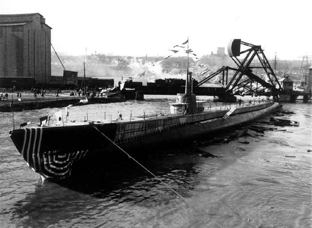 ![]() | 365k | 1,500 tons of Hardhead (SS-365) makes an impression during her launching at Manitowoc Shipbuilding Co., Manitowoc, WI., 12 December 1943. | Photo by Harry Berns, Official photographer of the Manitowoc Shipbuilding Co., Manitowoc, WI., courtesy of Scott Koen & ussnewyork.com. | |