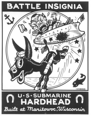 ![]() | 46k | Hardhead (SS-365), Ship's WW II battle insignia, 1944. | Photo by Harry Berns, Official photographer of the Manitowoc Shipbuilding Co., Manitowoc, WI. Submitted by Larry Bohn, courtesy of the Wisconsin Maritime Museum, home of the Cobia (SS-245) | |