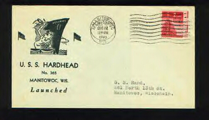 ![]() | 183k | Launch cachet of the Hardhead (SS-365). | Photo courtesy of Scott Koen & ussnewyork.com. | |