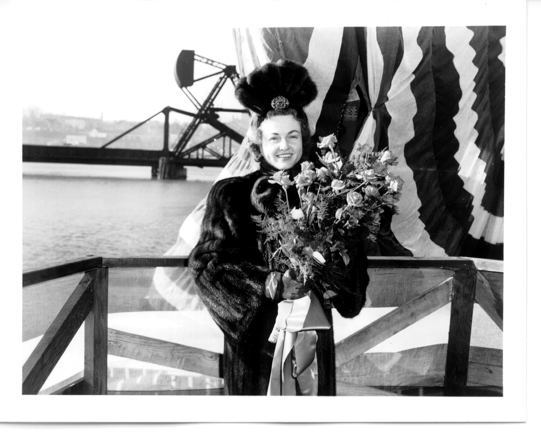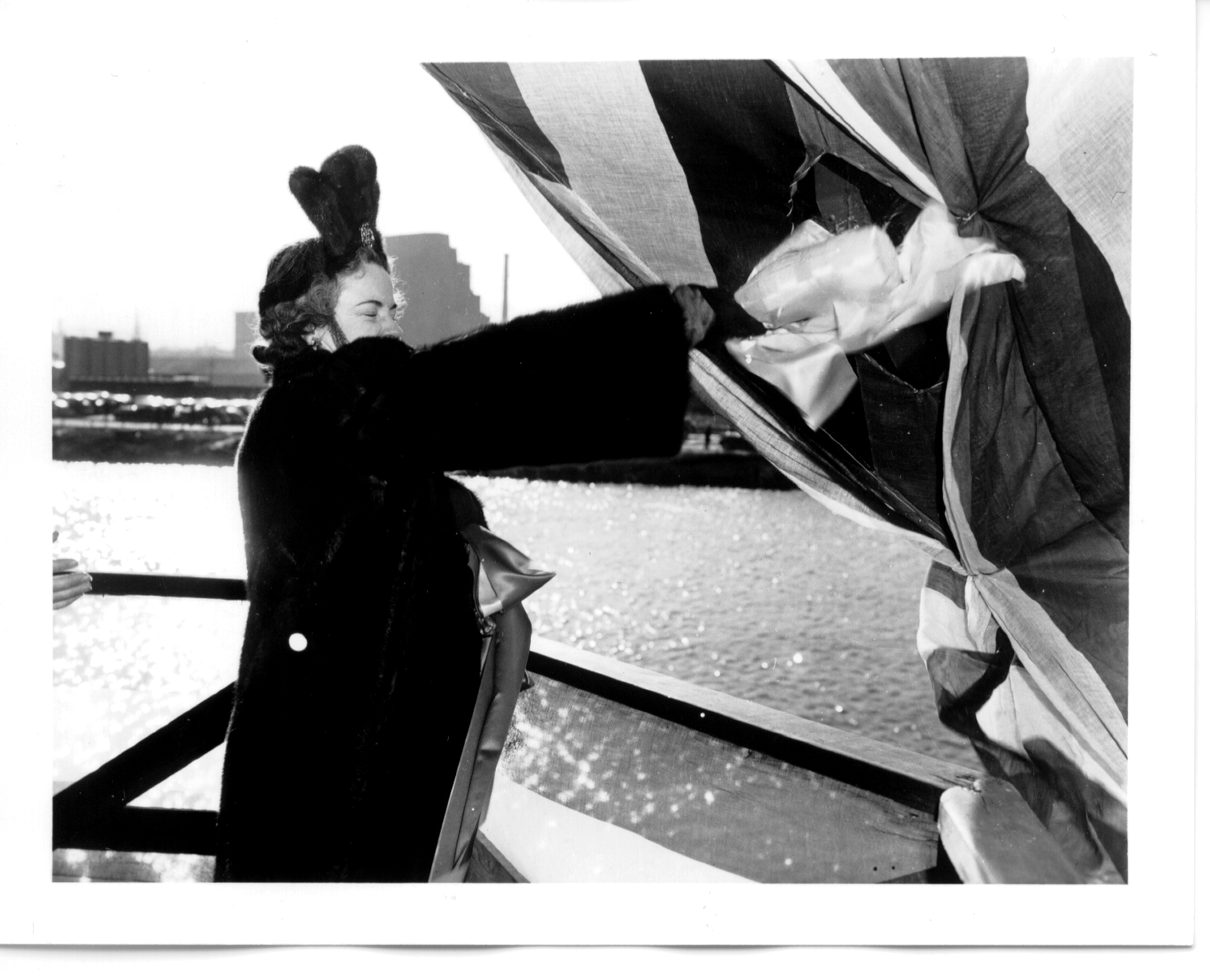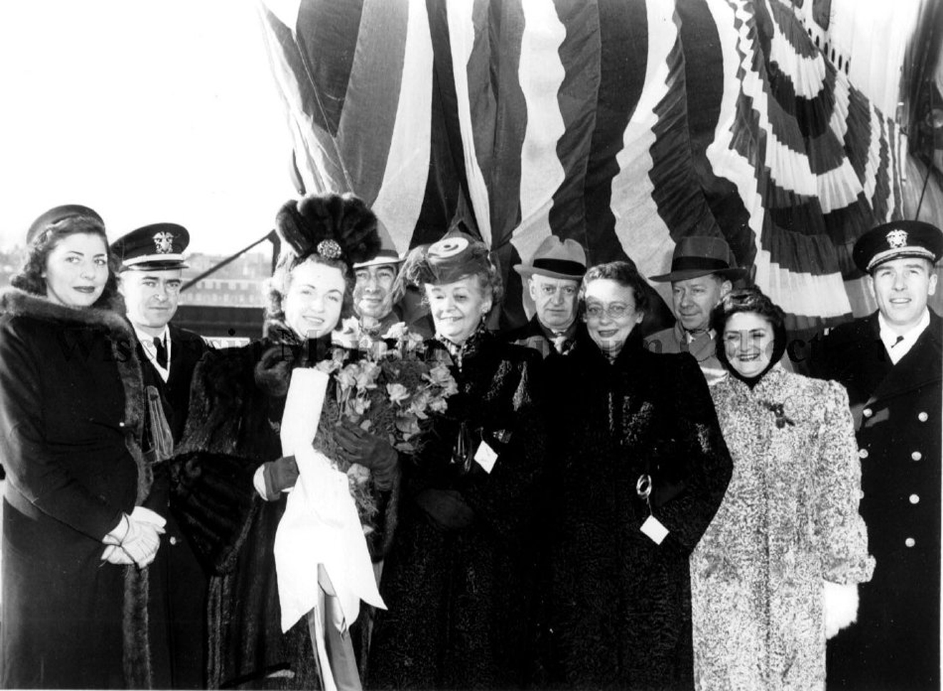 ![]() 0836527 | 905k | Mrs. E.F. McDonald, sponsor of the Manitowoc built submarine holding flowers at christening of Hardhead (SS-365) on 12 December 1943. | Photo by Harry Berns, Official photographer of the Manitowoc Shipbuilding Co., Manitowoc, WI. This photo # P70-7-380, can be ordered from the Wisconsin Maritime Museum. |