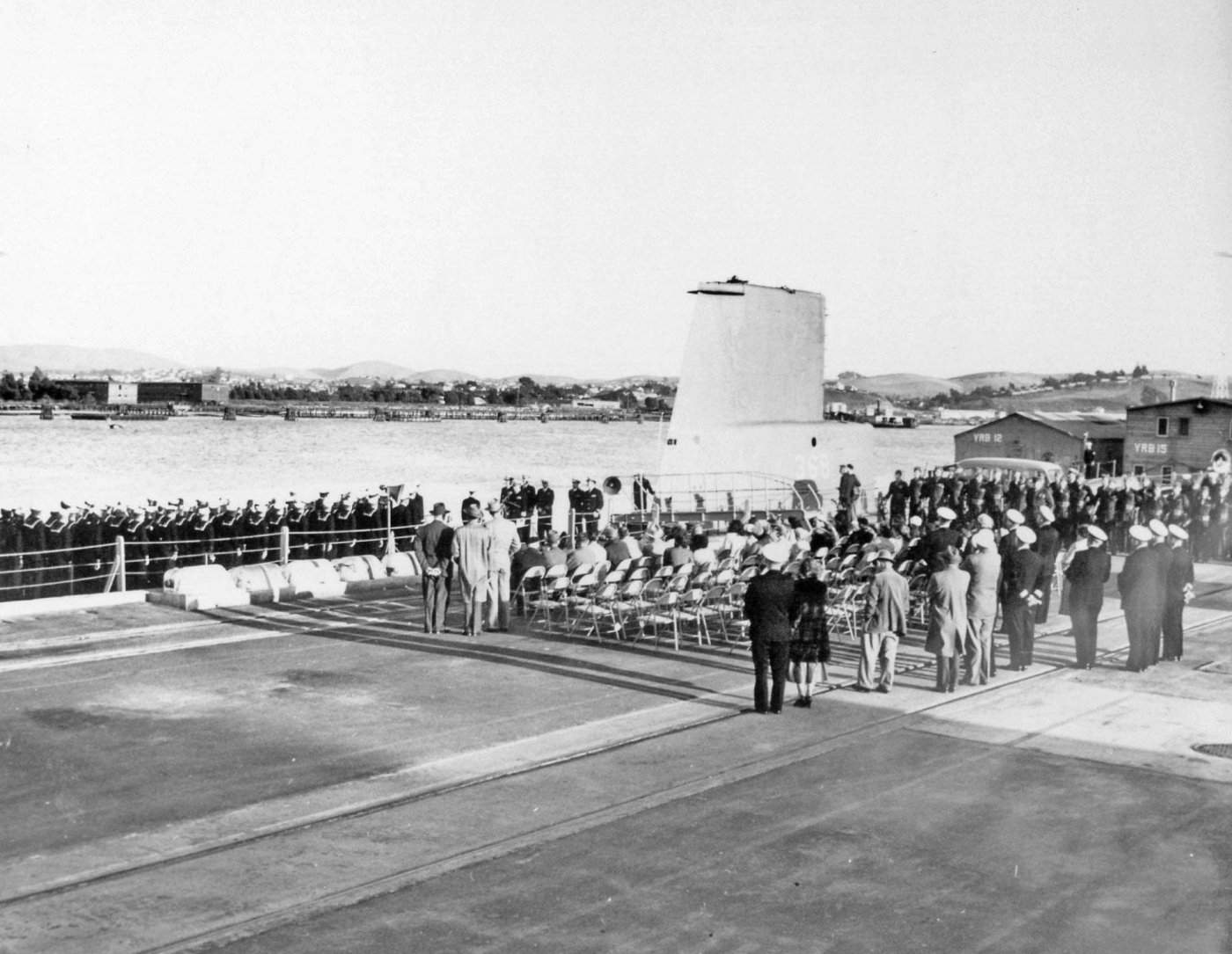 ![]() | 128k | LCDR J. W. Mercer assumes command of the re-commissioned Jallao (SS-368), at Mare Island on 4 December 1953. | USN photo # 9521-12-53, courtesy of Darryl L. Baker. | |