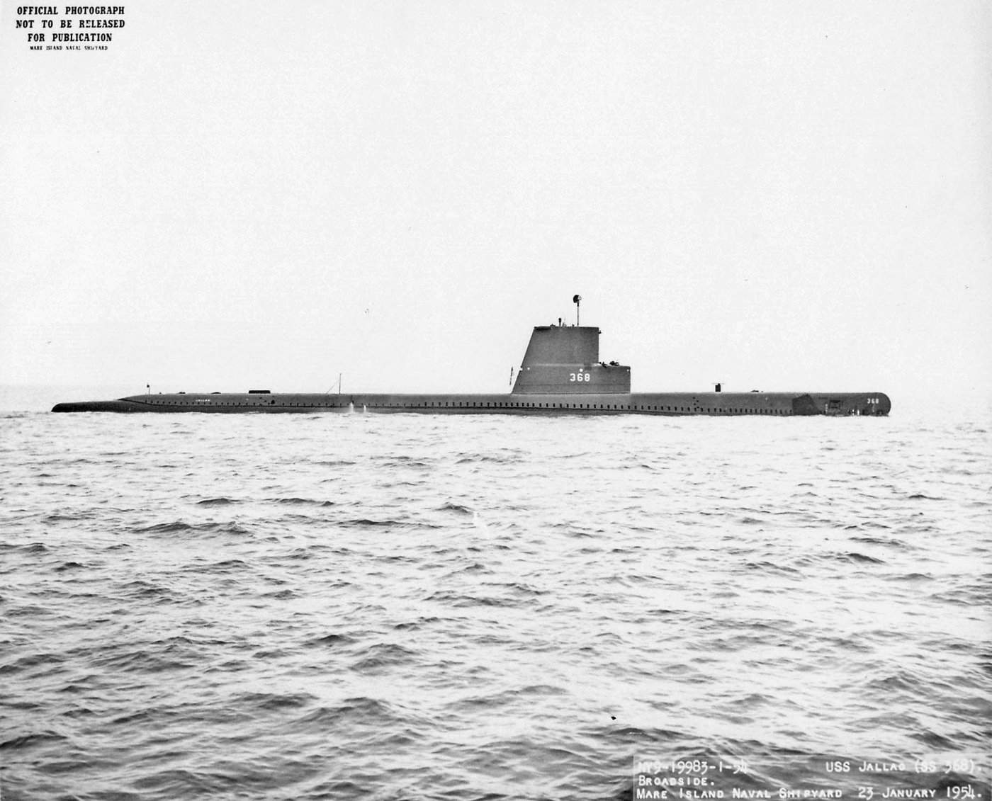 ![]() | 309k | Bow view of the Jallao (SS-368) at New London CT., 1958. | Photo by FTCM(SS) John Lundquist via John Hummel, USN (Retired). | |