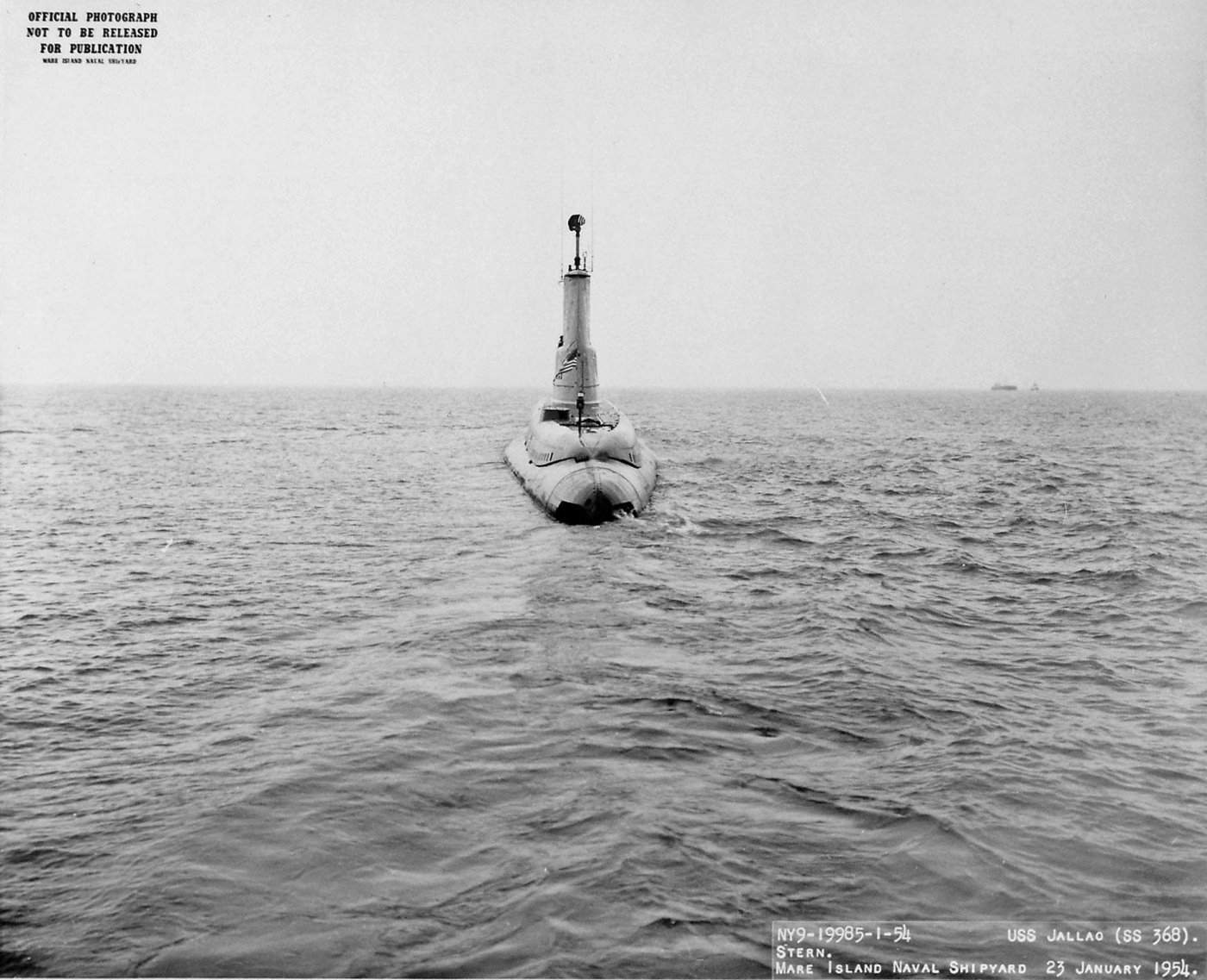 ![]() | 145k | Stern view of Jallao (SS-368) off Mare Island on 23 January 1954. | USN photo # 99853-1-54, courtesy of Darryl L. Baker. | |