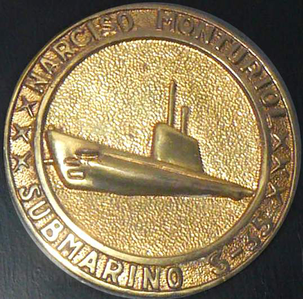 59k | Narciso Monturiol (S-35) plaque. It is 7 inches in diameter and weighs 1.3 kilograms of pure bronze. | Photo courtesy of CMDR Peter Curto via Sergio Cocciarin & Yves Hubert. | |