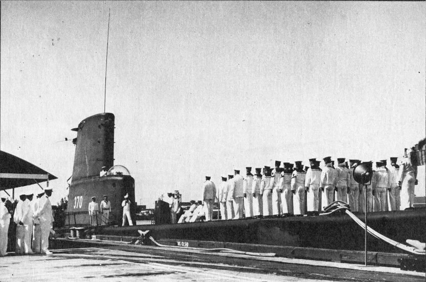 ![]() | 108k | Kraken (SS-370) photo from the Spanish newspaper ("La Vanguardia Española", 22 October 1972), was taken during the transfer ceremony at Pearl Harbor, HI., on 24 October 1959. ADM Solomons addresses the Spanish crew, mustered on deck and headed by LCDR Reinoso. | Submitted by Fabio Peña. | |
