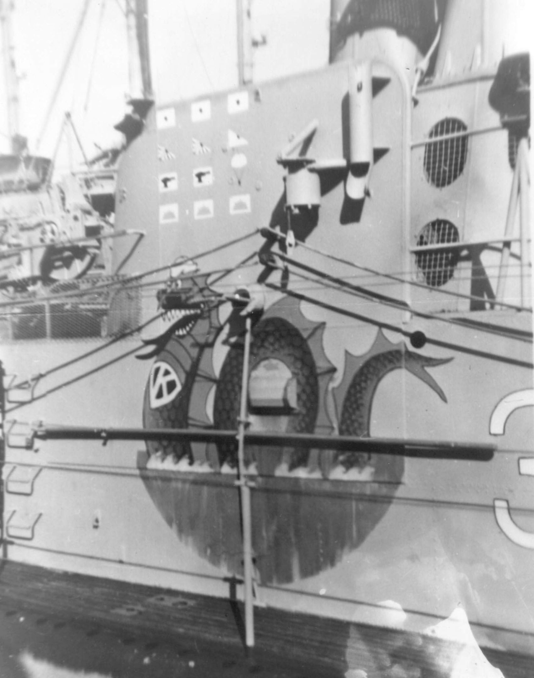 ![]() | 237k | Kraken (SS-370) the "Sea Dragon" and WW II sinkings on the conning tower, circa September 1945. | Courtesy of ussubvetsofwwii.org. | |