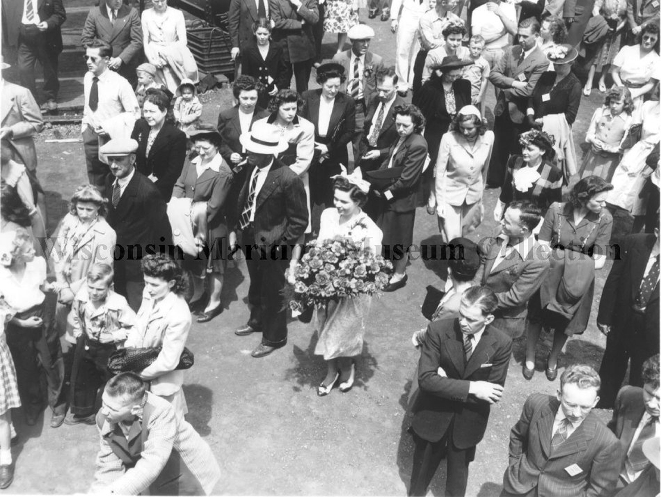 ![]() 0837209 | 618k | Mrs. W.T. Nelson, sponsor of the Manitowoc built submarine Lamprey (SS-372), walking through crowd at Manitowoc Shipbuilding Company on 18 June 1944. | Photo by Harry Berns, Official photographer of the Manitowoc Shipbuilding Co., Manitowoc, WI. This photo # P70-7-536, can be ordered from the Wisconsin Maritime Museum. |