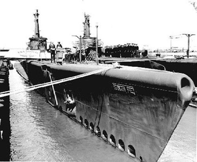232k | Undated image of the submarines ex-Catfish (SS-339), Santa Fe (S-11) and ex-Lamprey (SS-372), Santiago Del Estero (S-12), at Mar del Plata. | Photo courtesy of histarmar.com.ar via Robert Hurst. | |