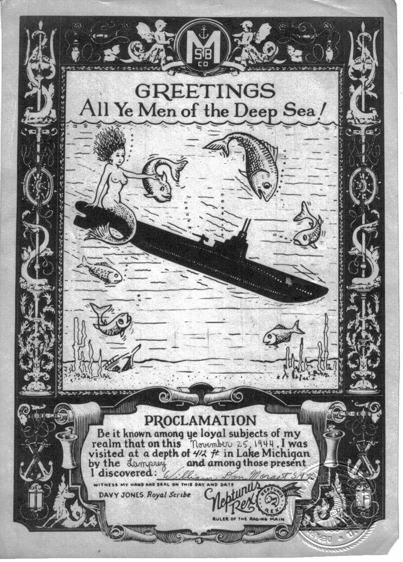 ![]() | 58k | Lamprey's (SS-372) emblem and crew signatures, circa November 1944. | Photo by Harry Berns, Official photographer of the Manitowoc Shipbuilding Co., Manitowoc, WI. Submitted by Larry Bohn, courtesy of the Wisconsin Maritime Museum, home of the Cobia (SS-245) | |